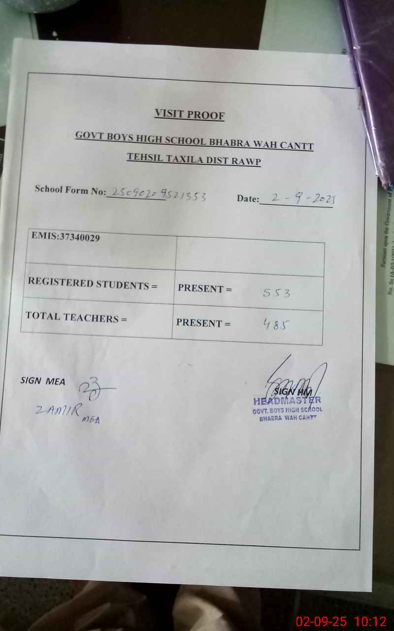 | EMIS Code: 37340029 | Name of School: GHS BHABRA WAH CANTT | |||