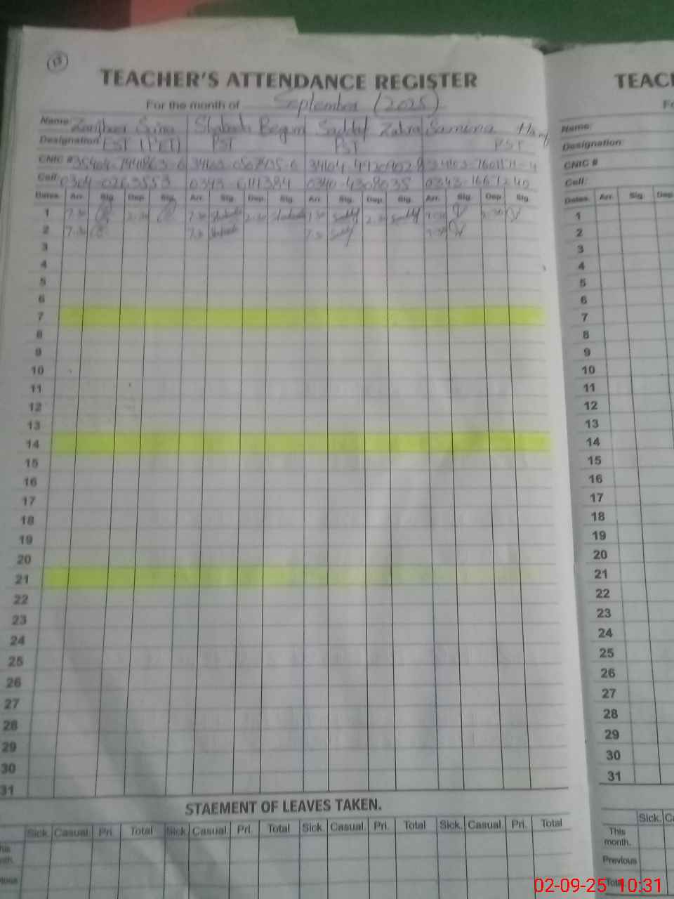 | Name: Za**** Sa**** Designation: (School Headmaster's/Headmistress's) EST Phone/Cell Number: 03**** |