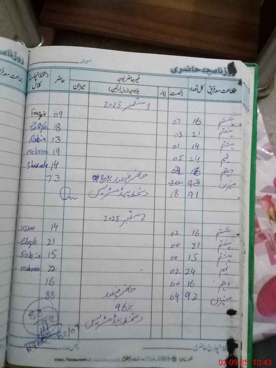 | No. of Students Present - Female | 0 | 0 | 0 | 0 | 0 | 0 | 0 | 0 | 14 | 21 | 15 | 22 | 16 | 88 | ||