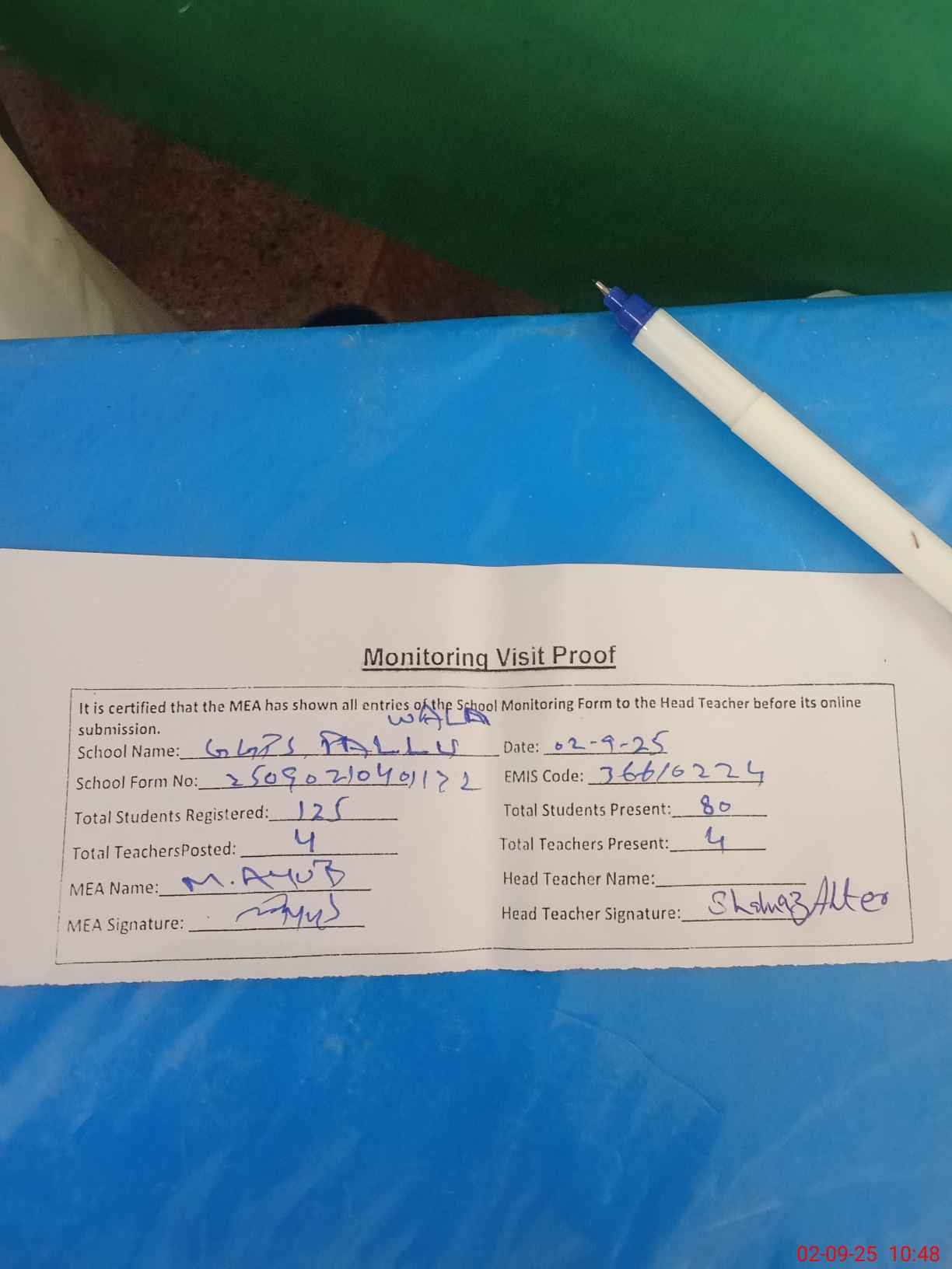 | EMIS Code: 36610224 | Name of School: GGPS PALLU WALA | |||