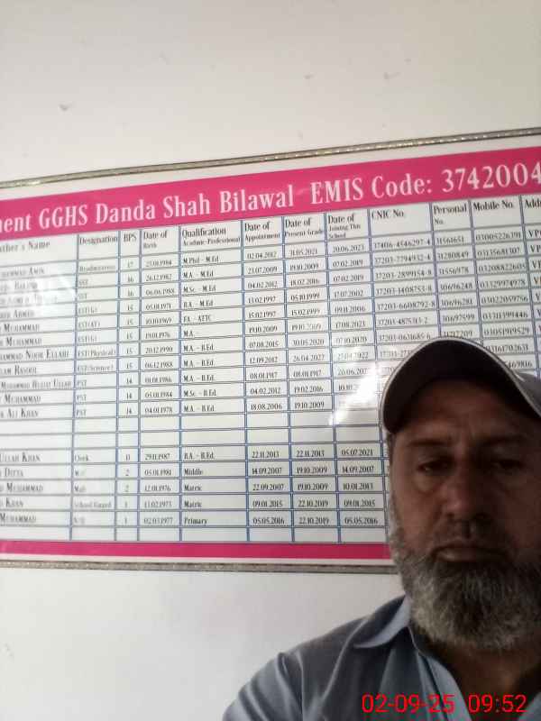 | EMIS Code: 37420040 | Name of School: GGHS DANDA SHAH BILAWAL | |||