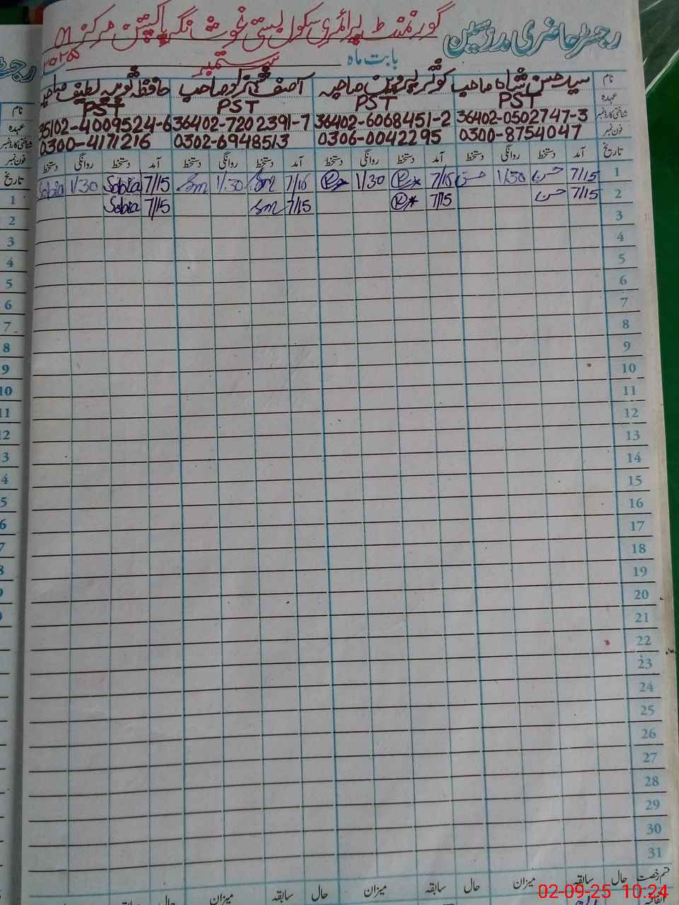 | Name: SY**** HA**** SH**** Designation: (School Headmaster's/Headmistress's) PST Phone/Cell Number: 03**** |
