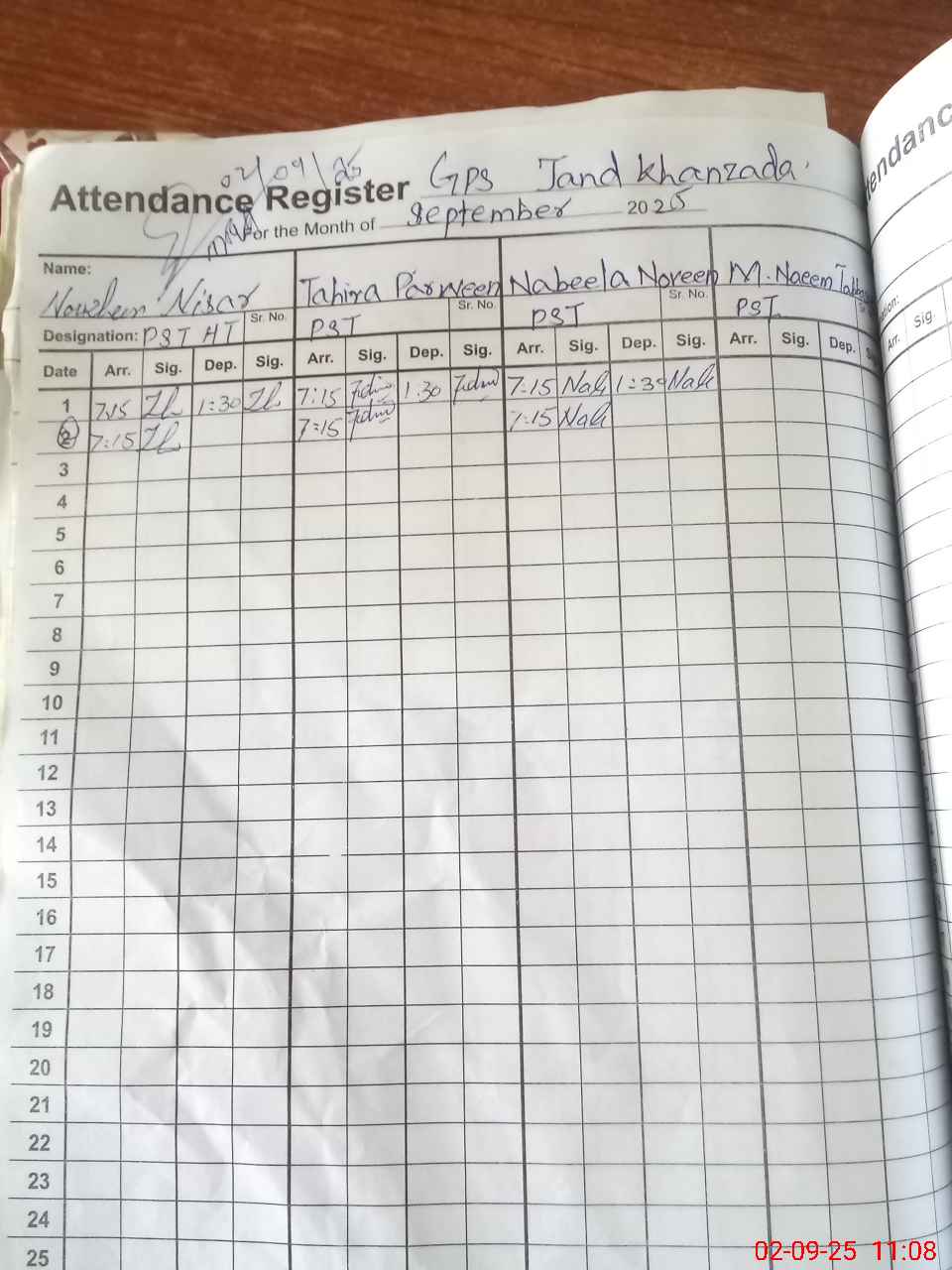 | CNIC | Full Name | Designation | R/C | Absence During Last Calender Month |