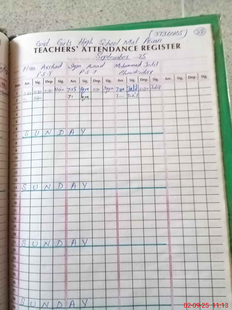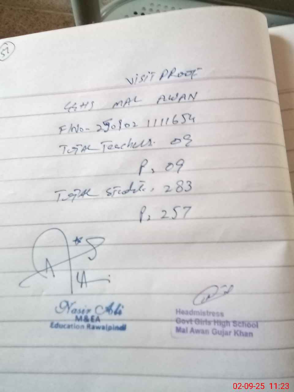 | Attendance Register | Head Teacher | MEA with School | Visit Proof |