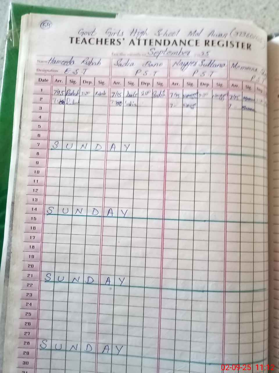 | Name: Hu**** Ta**** Designation: (School Headmaster's/Headmistress's) Headmistress Phone/Cell Number: 03**** |