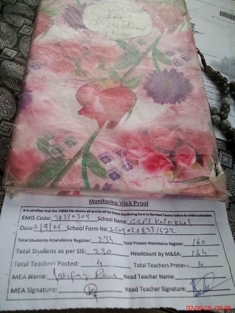 | Attendance Register | Head Teacher | MEA with School | Visit Proof |