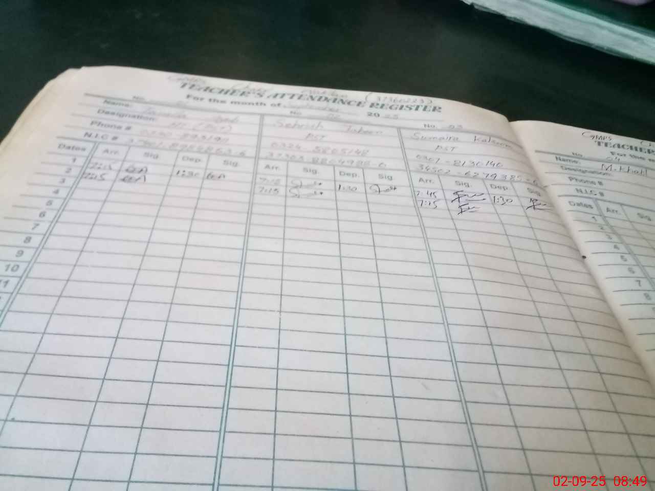 | CNIC | Full Name | Designation | R/C | Absence During Last Calender Month |