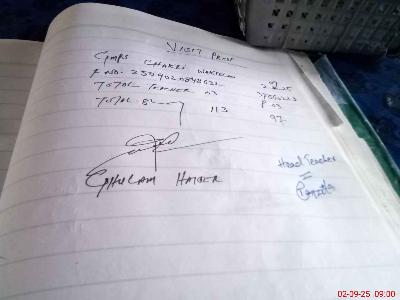 | Attendance Register | Head Teacher | MEA with School | Visit Proof |