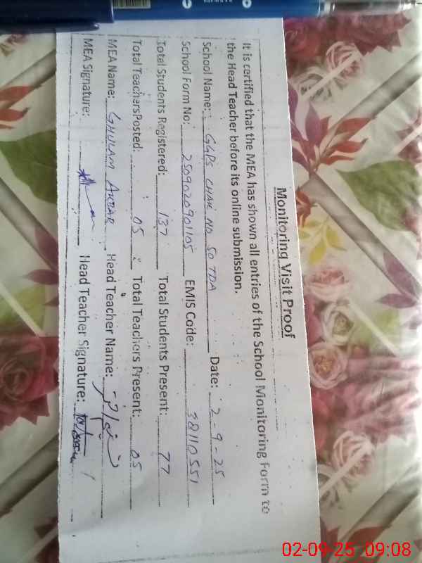 | EMIS Code: 38110551 | Name of School: GGPS CHAK NO.50 TDA | |||