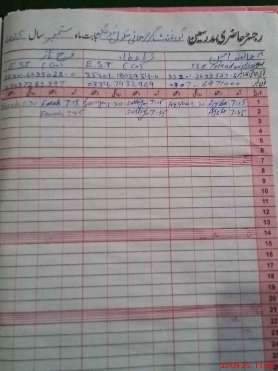 | Name: AY**** AM**** Designation: (School Headmaster's/Headmistress's) S.S.T. Phone/Cell Number: 03**** |