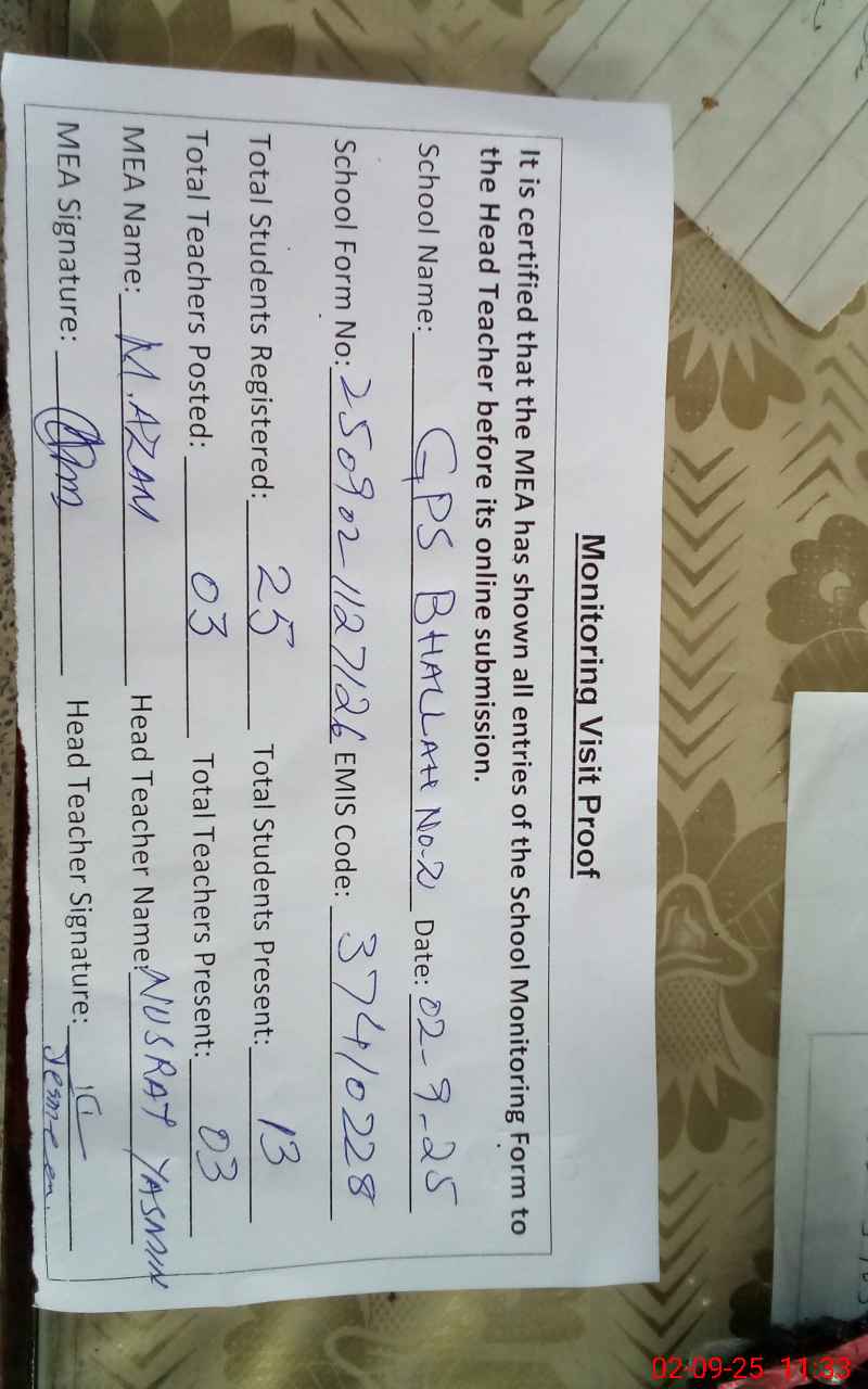 | EMIS Code: 37410228 | Name of School: GPS BHALLAH NO. 2 | |||