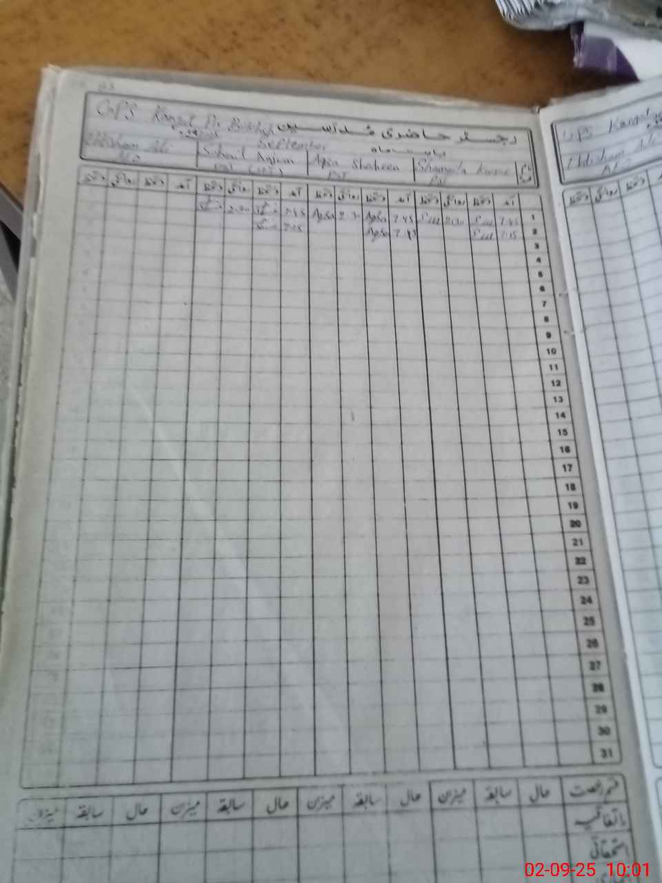 | CNIC | Full Name | Designation | R/C | Absence During Last Calender Month |