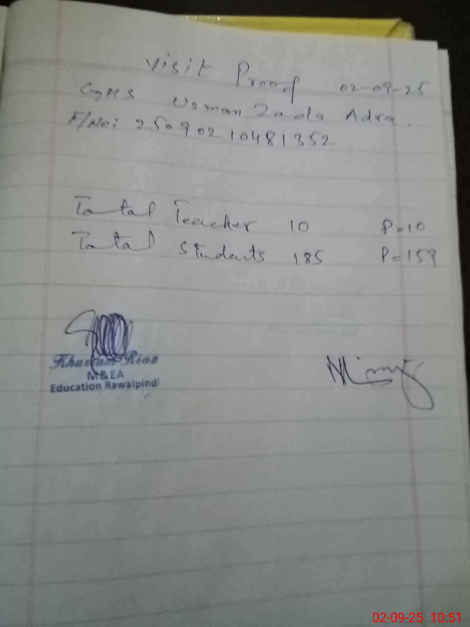 | EMIS Code: 37360084 | Name of School: GHS USMAN ZADA ADRAH | |||