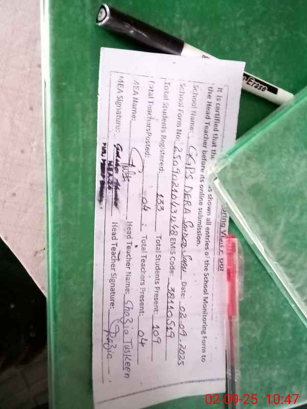 | Attendance Register | Head Teacher | MEA with School | Visit Proof |