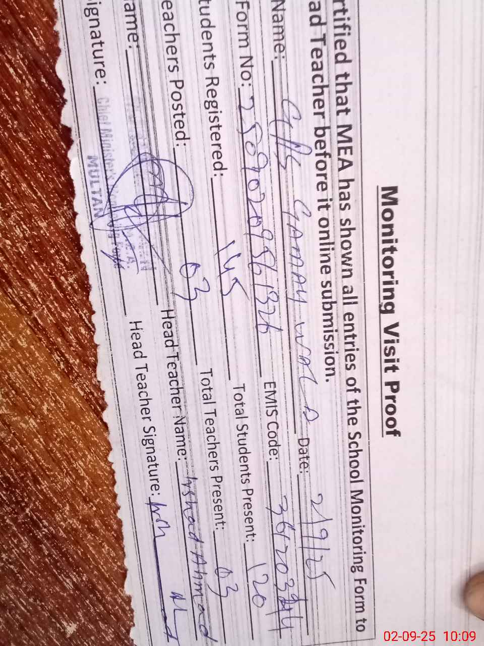 | EMIS Code: 36120344 | Name of School: GPS GAMAY WALA ADDA PIR GHAIB P/O NASEERPUR | |||