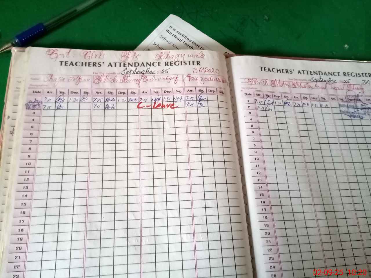 | Attendance Register | Head Teacher | MEA with School | Visit Proof |