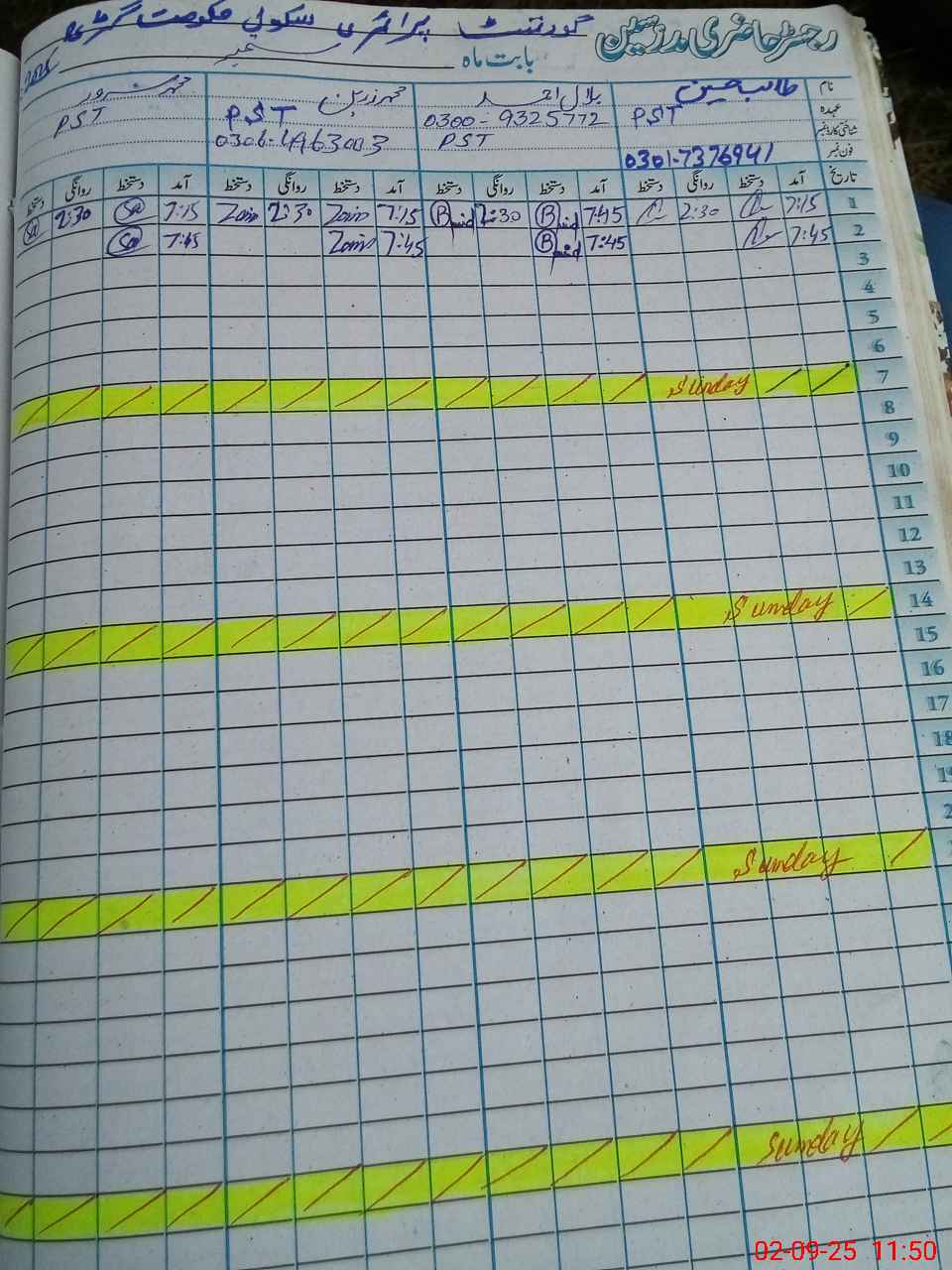 | Name: TA**** HU**** Designation: (School Headmaster's/Headmistress's) PST Phone/Cell Number: 03**** |