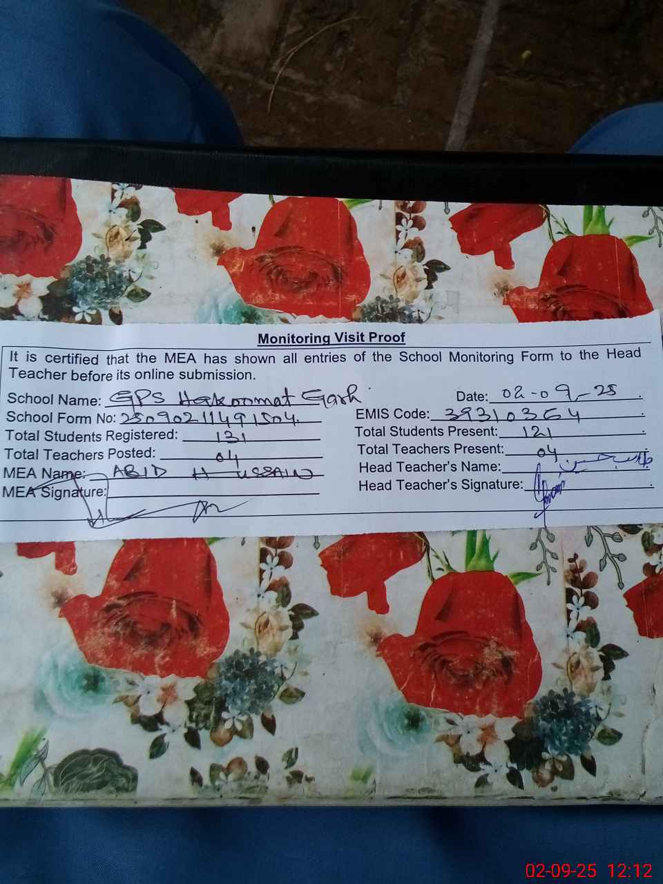 | EMIS Code: 39310364 | Name of School: GPS HAKOOMAT GARH | |||