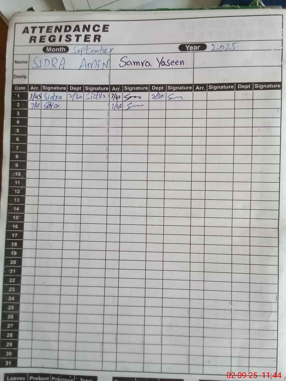 | 33**** | Zu**** Zu**** | 2 | 2 | 0 | 0 | 0 | 0 | 0 | 0 | 0 | 0 | 0 | Absent (Un-Authorized) |