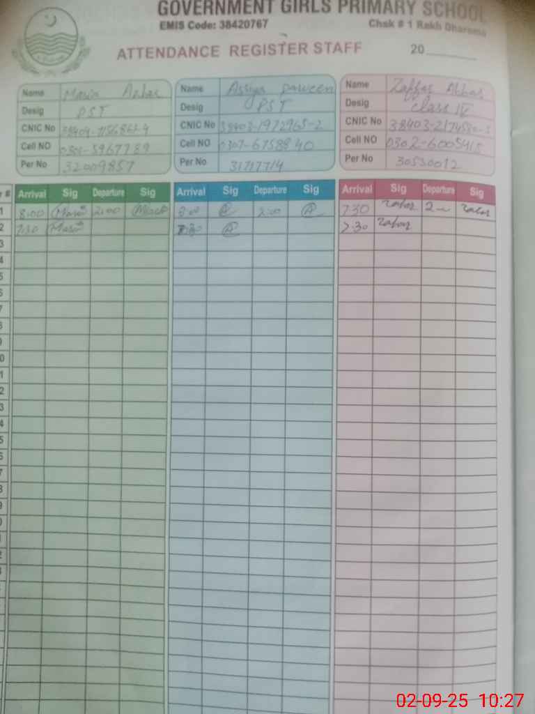 | Name: Ma**** Az**** Designation: (School Headmaster's/Headmistress's) PST Phone/Cell Number: 03**** |