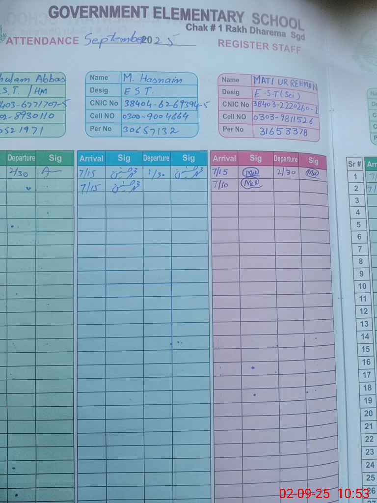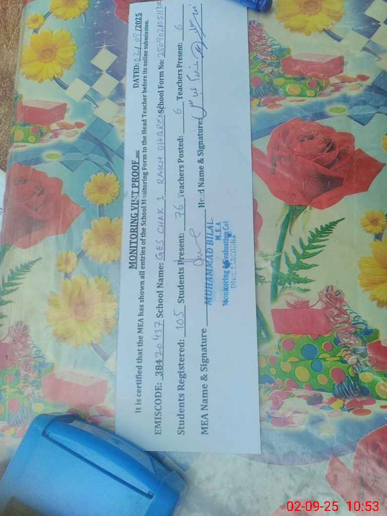 | EMIS Code: 38420437 | Name of School: GES CHAK NO.1 RAKH DHAREMA | |||