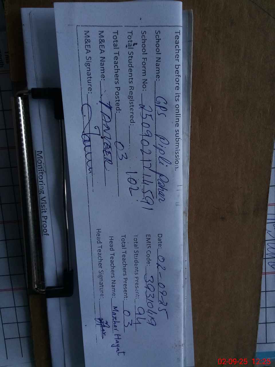 | EMIS Code: 39310419 | Name of School: GPS PIPLI PAHAR | |||