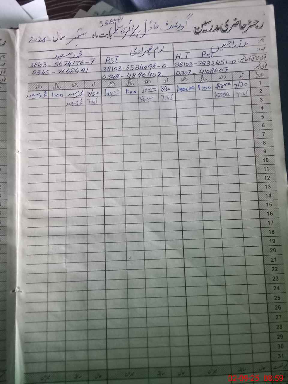 | Name: Az**** Ja**** Designation: (School Headmaster's/Headmistress's) PTC/JV Phone/Cell Number: 03**** |