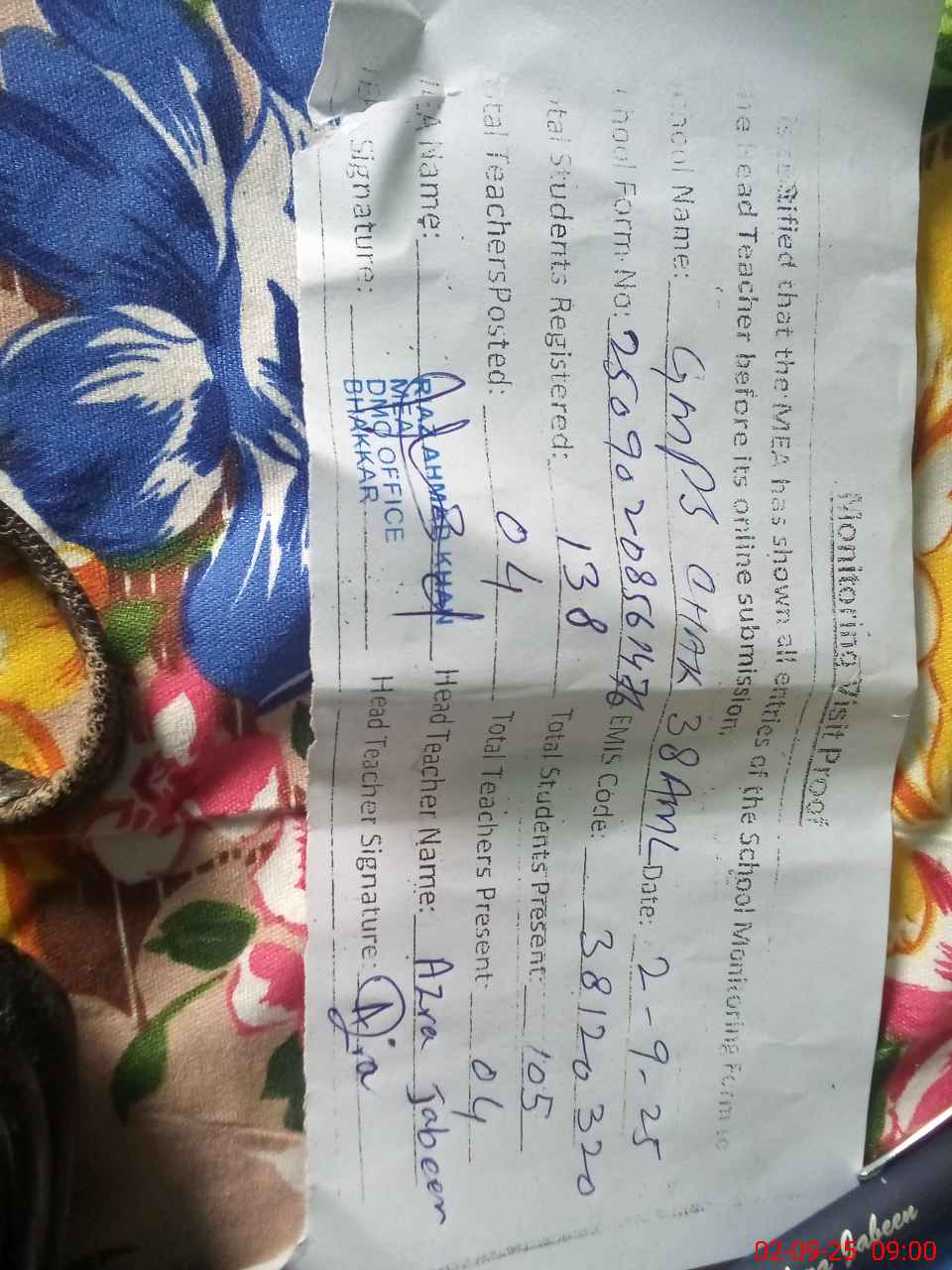 | EMIS Code: 38120320 | Name of School: GMPS CHAK NO 38 A/ML | |||