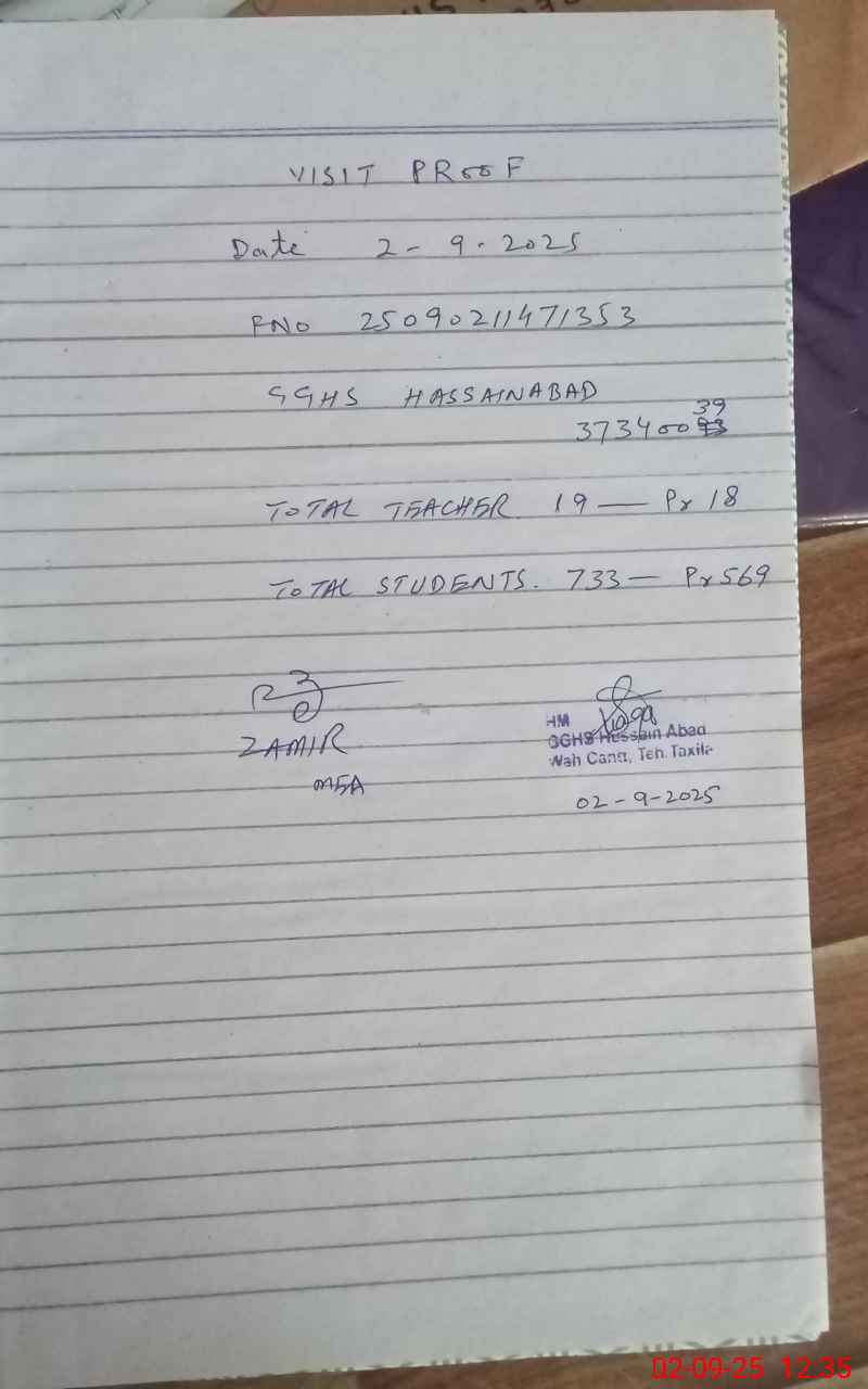 | EMIS Code: 37340039 | Name of School: GGHS HASSAIN ABAD | |||