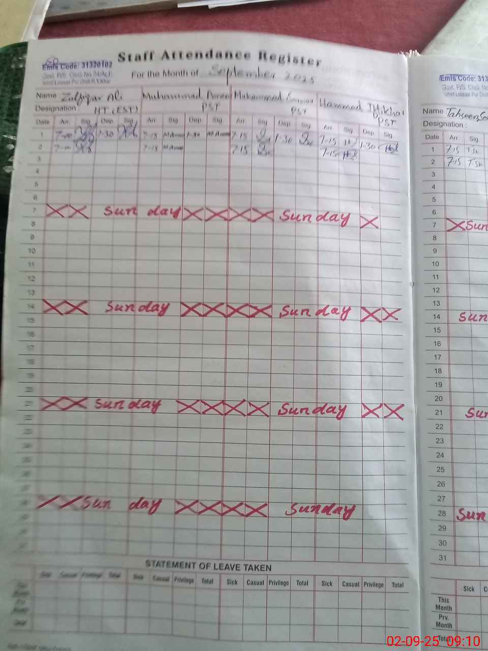 | Name: ZU**** AL**** Designation: (School Headmaster's/Headmistress's) EST (GEN) Phone/Cell Number: 03**** |