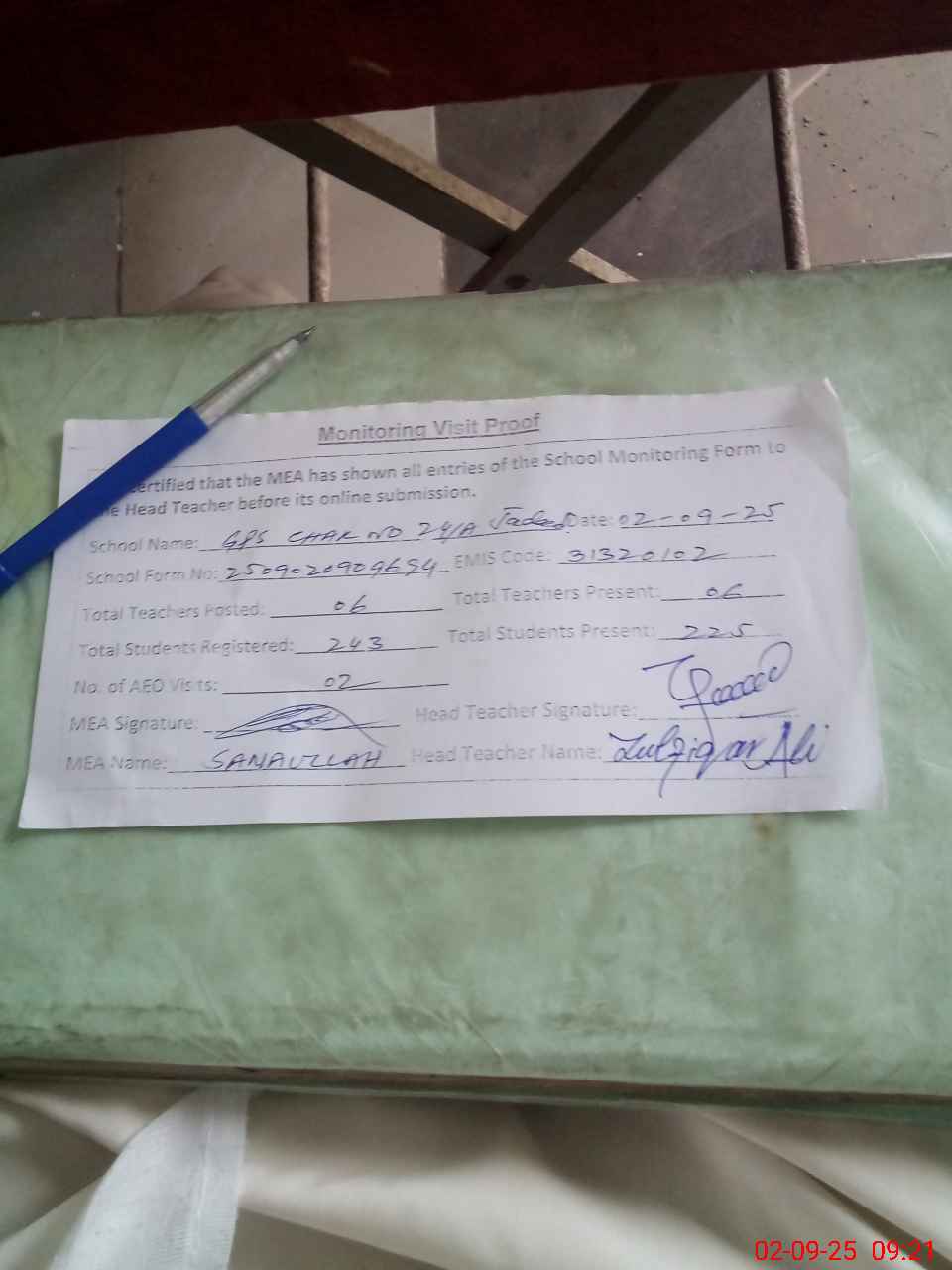 | EMIS Code: 31320102 | Name of School: GPS CHAK 24/A JADEED | |||