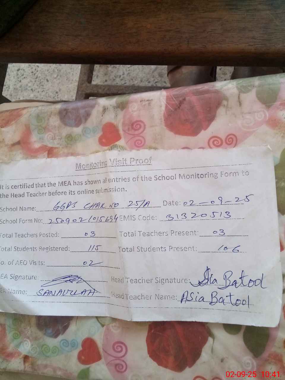 | EMIS Code: 31320513 | Name of School: GGPS CHAK NO.25/A | |||