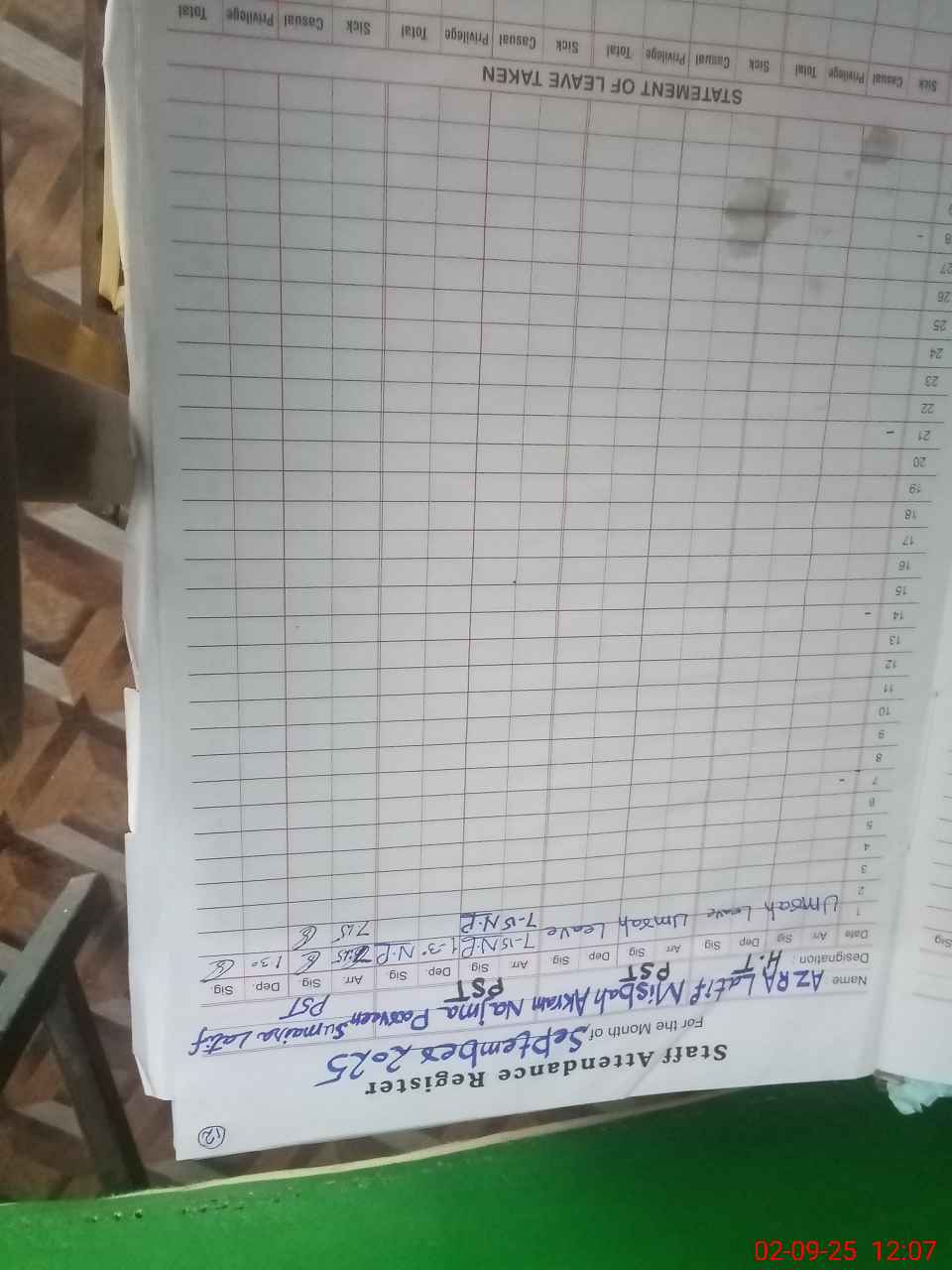| Name: AZ**** LA**** Designation: (School Headmaster's/Headmistress's) PST/PTC/JV Phone/Cell Number: 03**** |