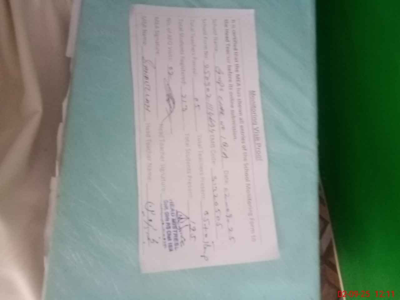| Attendance Register | Head Teacher | MEA with School | Visit Proof |