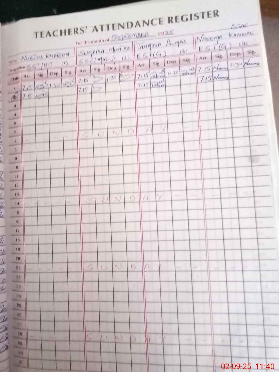 | Name: Nu**** Kh**** Designation: (School Headmaster's/Headmistress's) HEADMISTRESS Phone/Cell Number: 03**** |