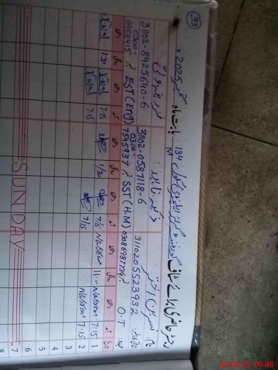 | Name: ZA**** NA**** Designation: (School Headmaster's/Headmistress's) S.S.T.(Arts) Phone/Cell Number: 03**** |