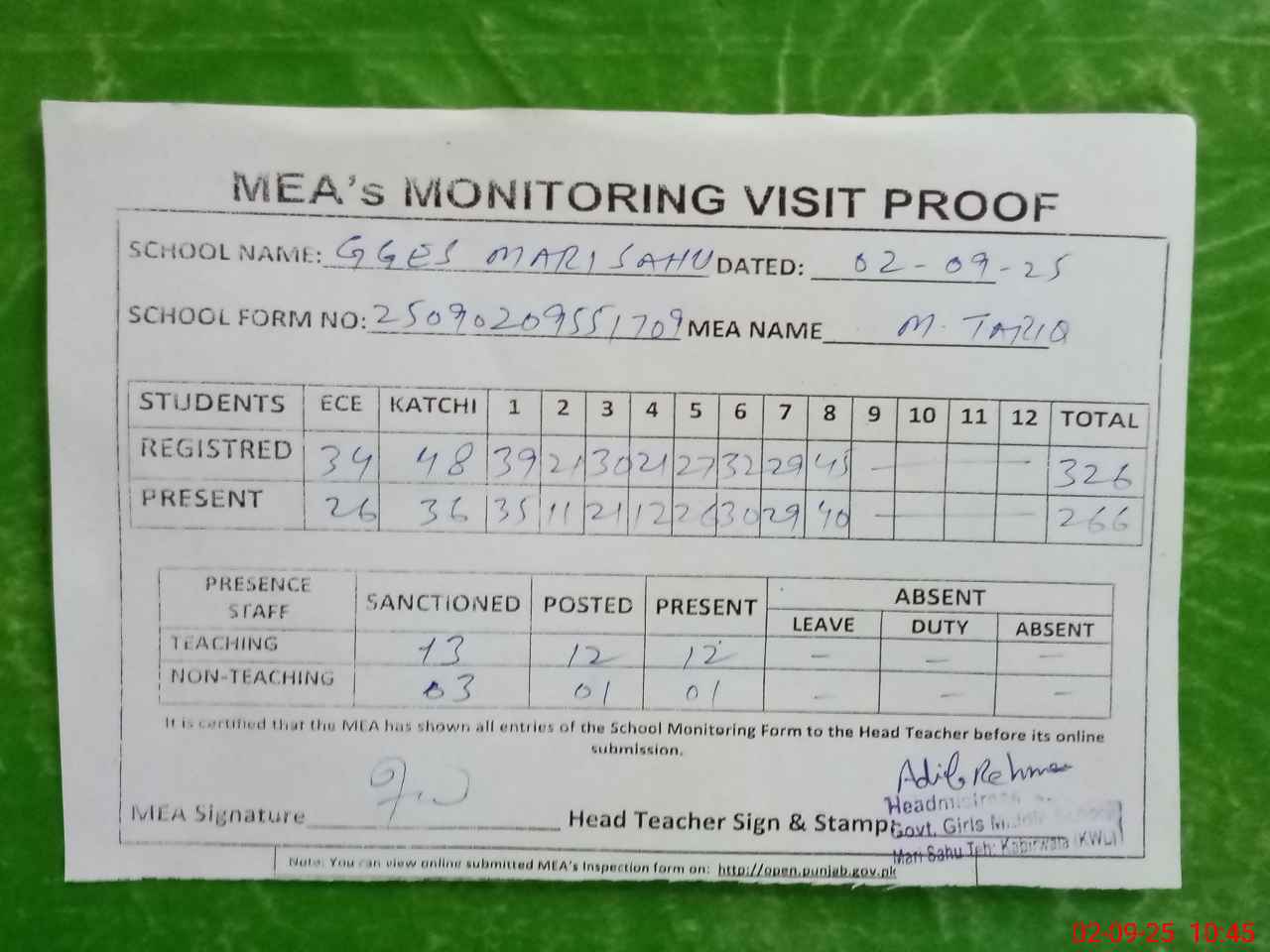 | EMIS Code: 36410094 | Name of School: GGES MARI SAHU, KABIRWALA | |||