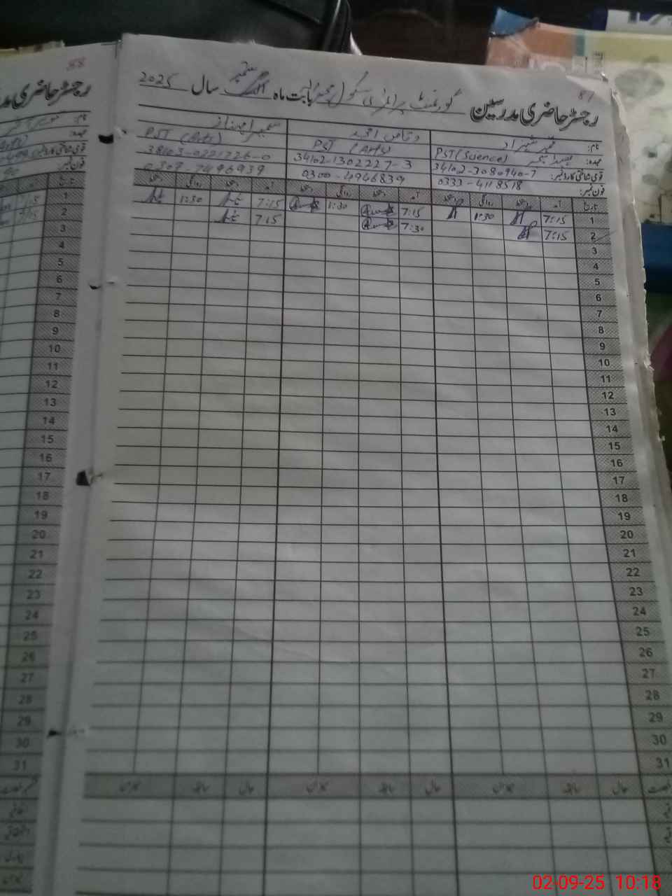| Name: QA**** SH**** Designation: (School Headmaster's/Headmistress's) PST/PTC/JV Phone/Cell Number: 03**** |