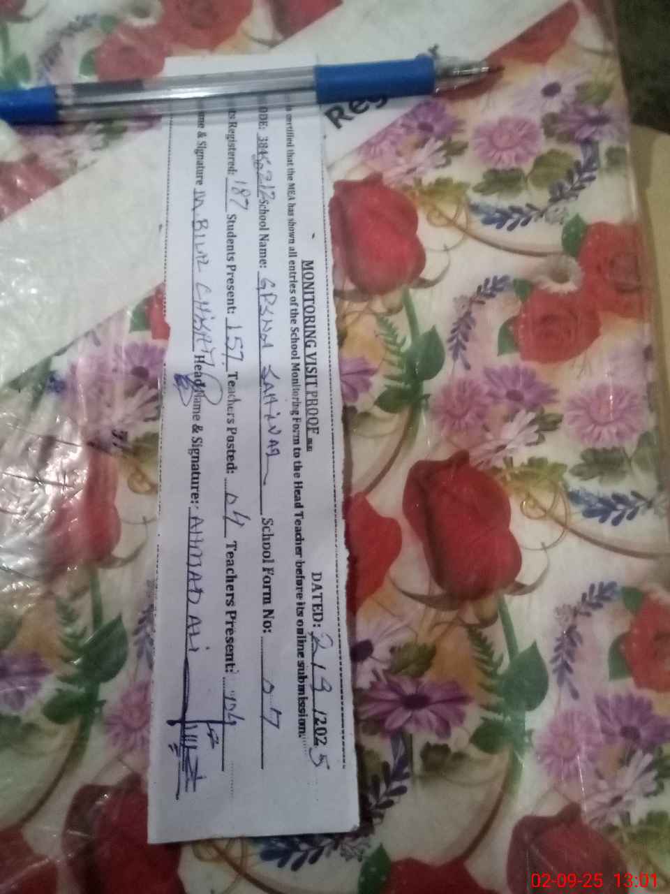 | Attendance Register | Head Teacher | MEA with School | Visit Proof |