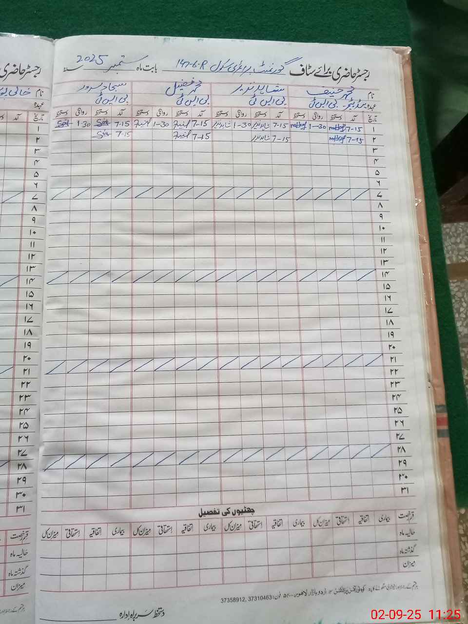 | CNIC | Full Name | Designation | R/C | Absence During Last Calender Month |