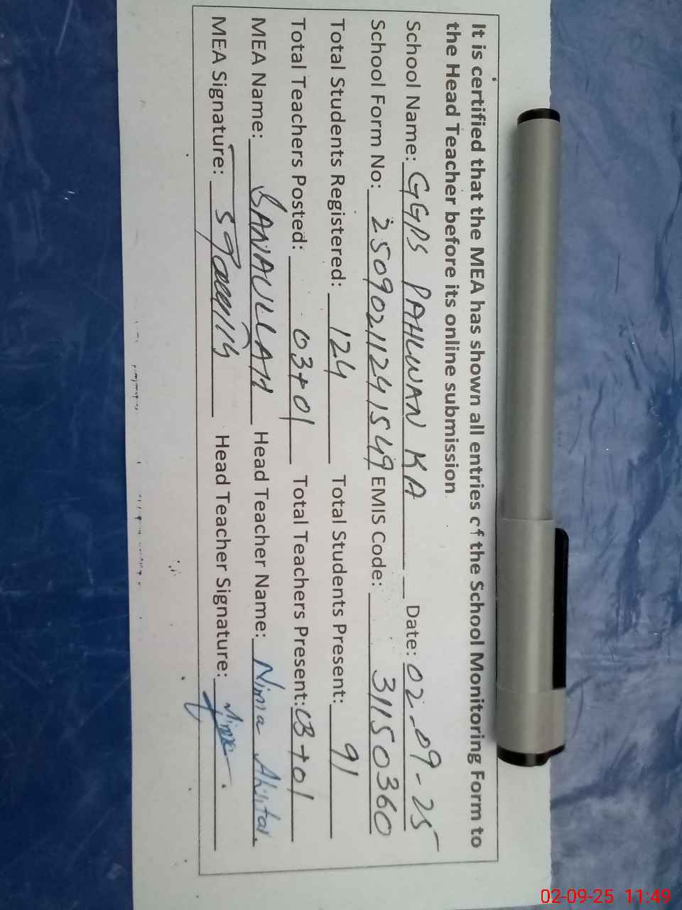 | EMIS Code: 31150360 | Name of School: GGPS PAHALWAN KA | |||