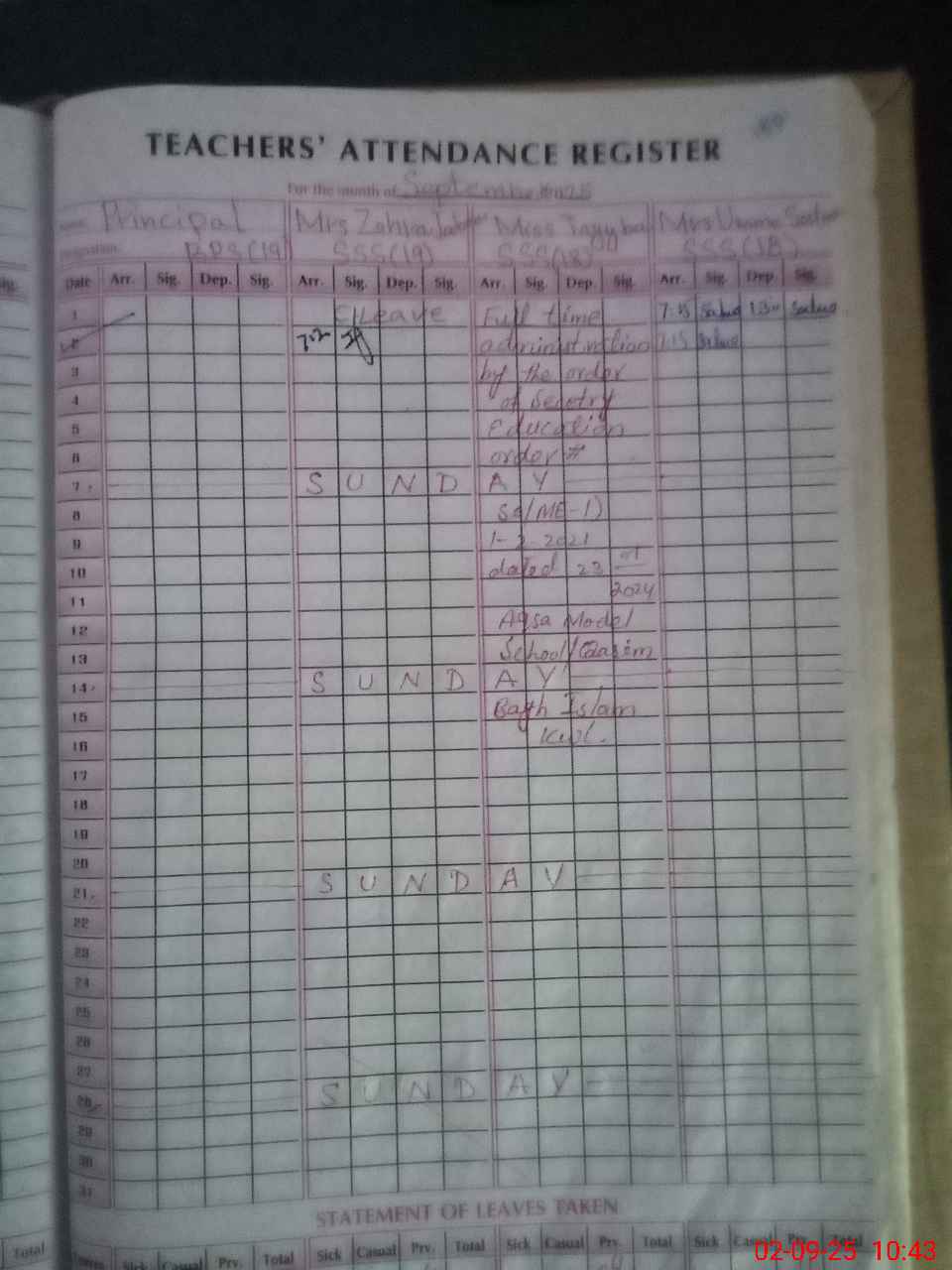 | Leave | Duty | Absent | Maternity | Medical | Ex- Pak |