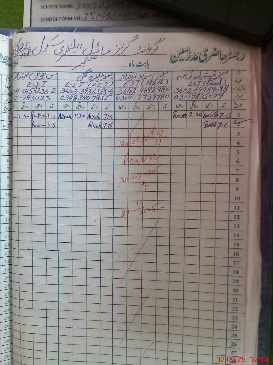 | Name: As**** Ir**** Designation: (School Headmaster's/Headmistress's) Est Phone/Cell Number: 03**** |