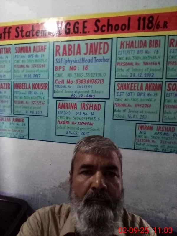 | EMIS Code: 31140103 | Name of School: GGES CHAK NO. 118/6-R | |||