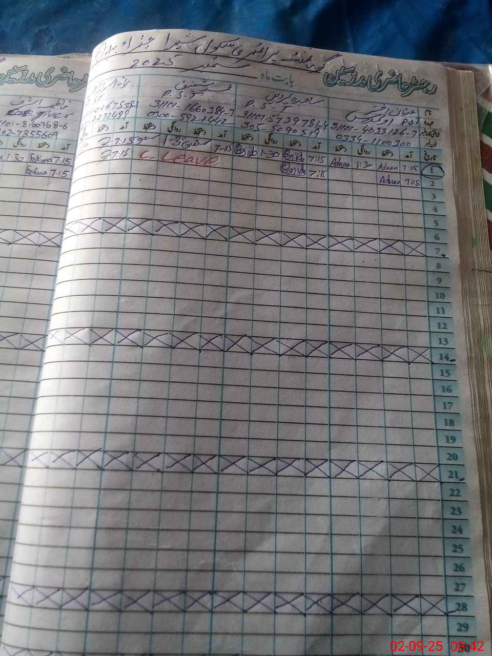 | Leave | Duty | Absent | Maternity | Medical | Ex- Pak |