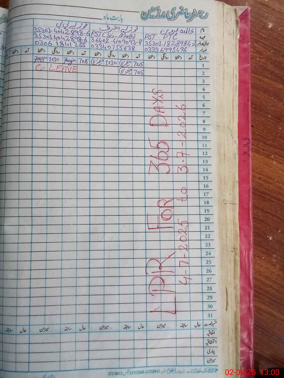 | Name: KH**** PE**** Designation: (School Headmaster's/Headmistress's) PST Phone/Cell Number: 03**** |