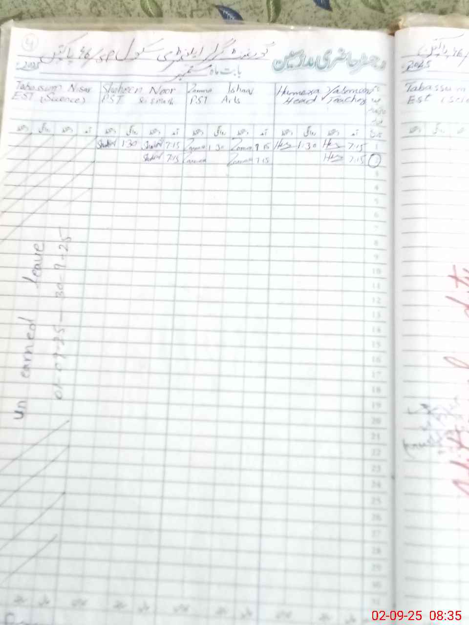 | Leave | Duty | Absent | Maternity | Medical | Ex- Pak |