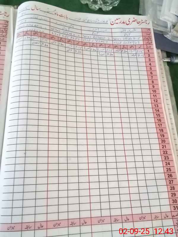 | CNIC | Full Name | Designation | R/C | Absence During Last Calender Month |