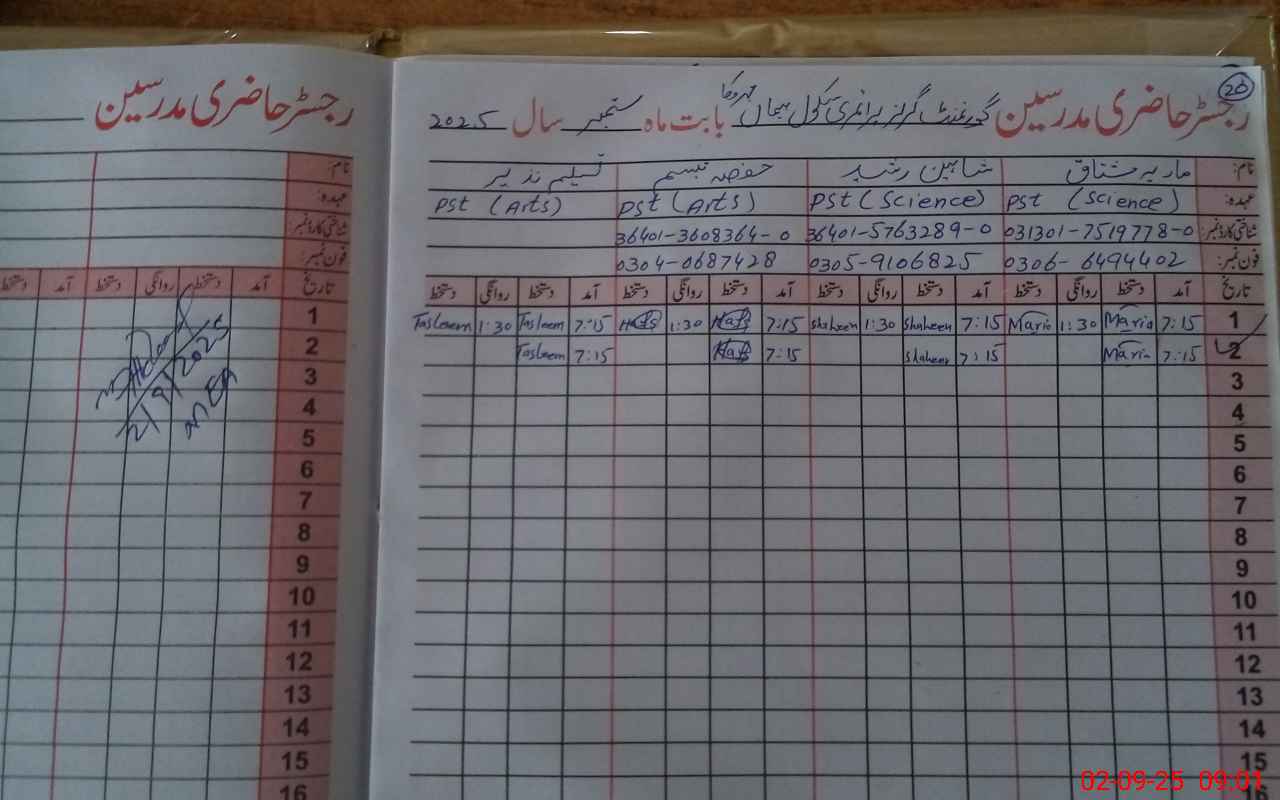 | Name: MA**** MU**** Designation: (School Headmaster's/Headmistress's) PST Phone/Cell Number: 03**** |