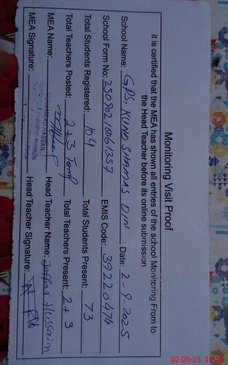 | EMIS Code: 39220474 | Name of School: GPS KUND SHAMAS DIN NO 2 | |||